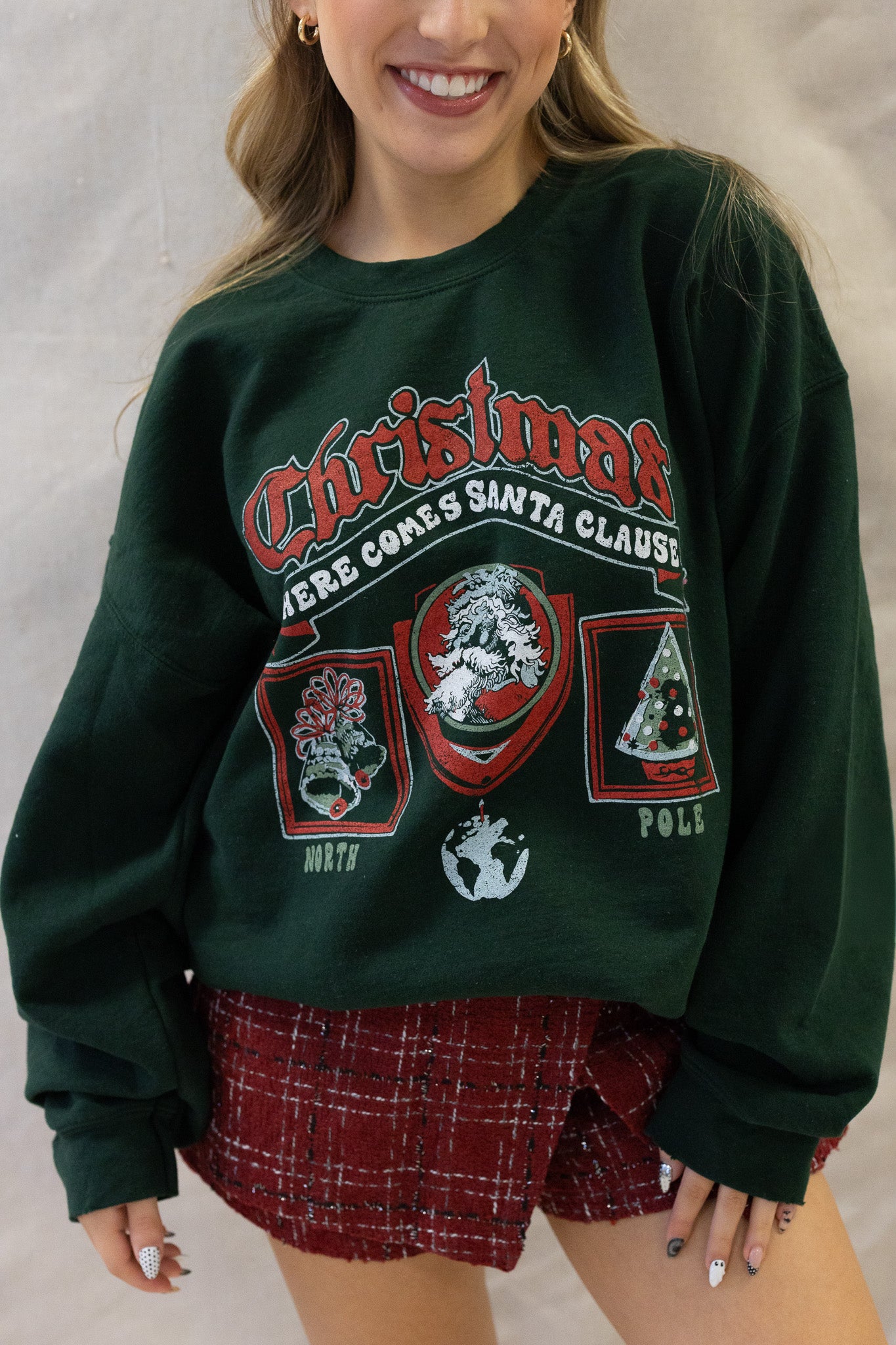 Christmas Patch Thrifted Sweatshirt - MILITARY GREEN / SMALL is backordered and will ship as soon as it is back in stock.