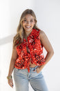 PAISLEY TIE FRONT VEST - TOMATO RED / SMALL is backordered and will ship as soon as it is back in stock.