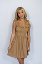 MAY RUFFLE COLLAR MINI DRESS - BEIGE RED / SMALL is backordered and will ship as soon as it is back in stock.
