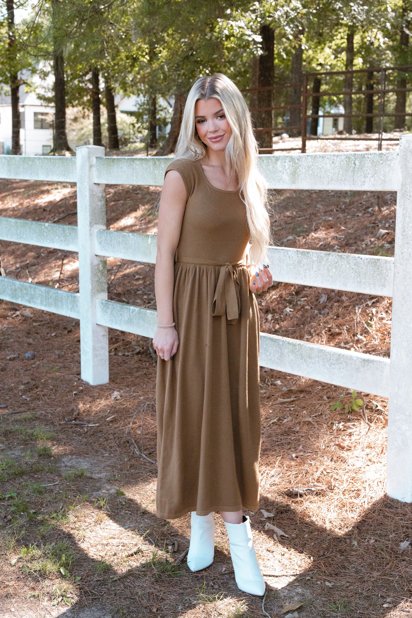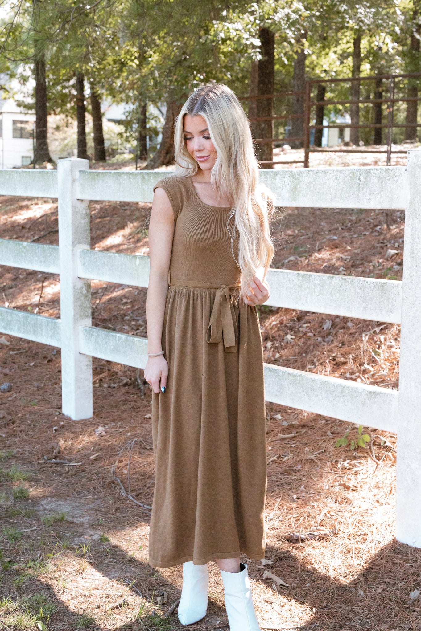 SWEATER BELTED MIDI DRESS - MOCHA / LARGE/XLARGE is backordered and will ship as soon as it is back in stock.