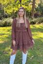 TIERED CHIFFON MINI DRESS - MOCHA / SMALL is backordered and will ship as soon as it is back in stock.