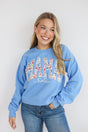 Sweet, soft, and made for all the mamas. This pastel blue crewneck features bold chenille “MAMA” lettering filled with a dainty floral print and a stitched white bow detail underneath. Whether you're running errands or soaking up snuggles, this one’s as cozy as it is cute