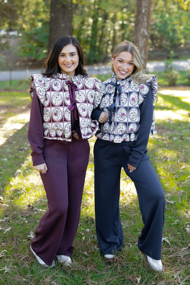 PUFF FLORAL VEST - BRICK / SMALL is backordered and will ship as soon as it is back in stock.