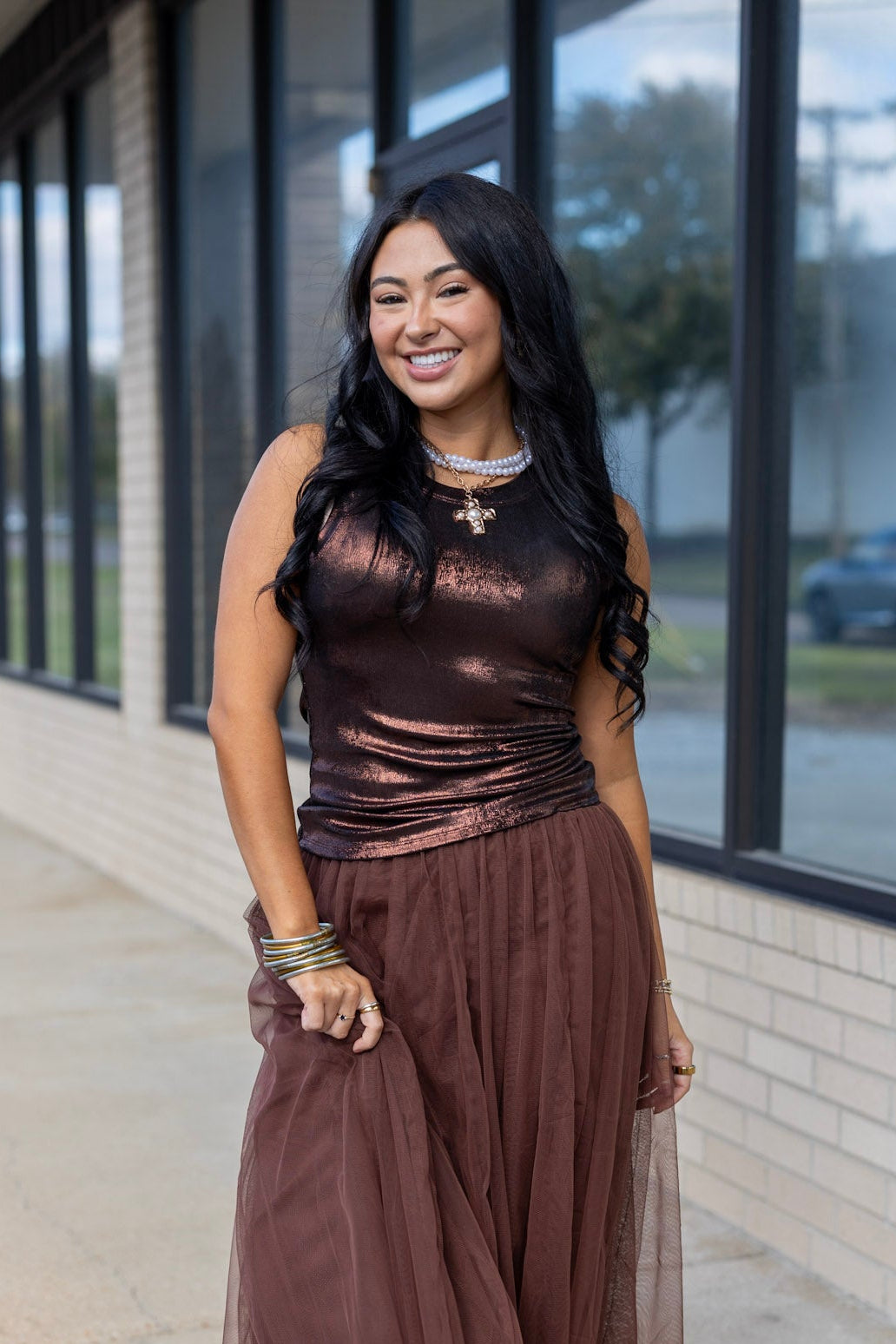 - Shanley is 5'5 and is wearing a size small