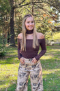 Fall in love with bold neutrals. This off-the-shoulder mocha top adds a flirty touch, perfectly paired with our wide-leg floral pants for a trendy, vintage-inspired look. Effortless, comfortable, and ready for coffee dates or fall adventures.