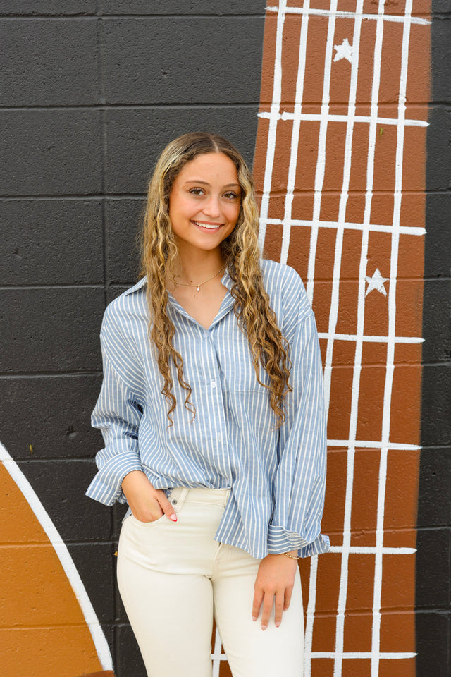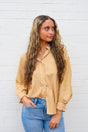 CROP STRIPE BUTTON TOP - CAMEL/IVORY / SMALL is backordered and will ship as soon as it is back in stock.
