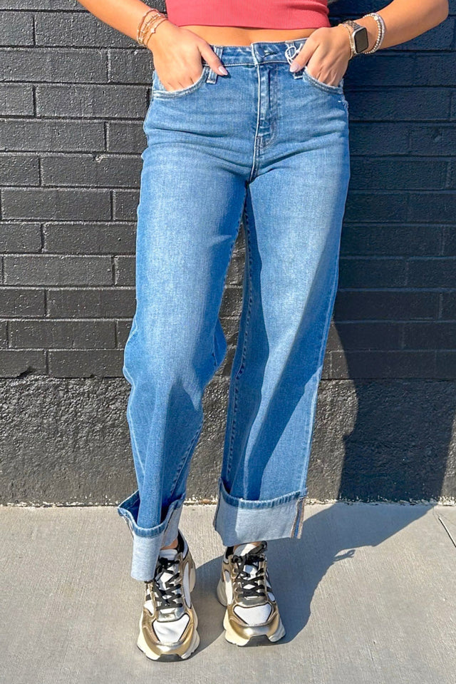 MOORLAND HIGH RISE CUFF JEAN - MOORLAND BLUE / 30 is backordered and will ship as soon as it is back in stock.
