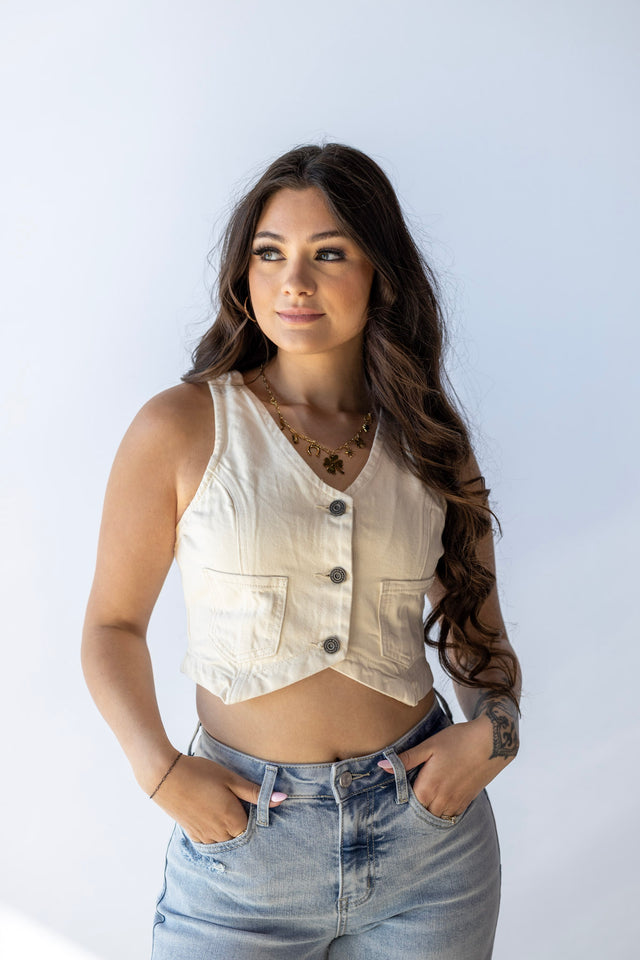 ERIN CROP FITTED VEST - ECRU / MEDIUM is backordered and will ship as soon as it is back in stock.