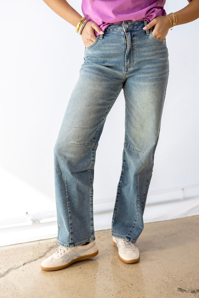 LASSO WIDE HIGH RISE BARREL JEAN - MEDIUM LIGHT / 25 is backordered and will ship as soon as it is back in stock.