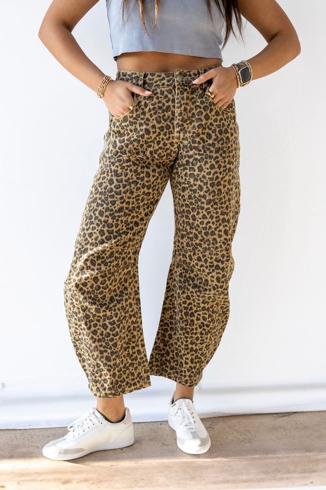 LEO TWILL BARREL JEAN - TAUPE LEOPARD / SMALL is backordered and will ship as soon as it is back in stock.