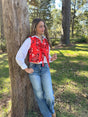 Western meets chic! This red bandana-print tie vest adds the perfect pop to any outfit. Style it over a crisp white blouse or graphic tee for a bold, trend-forward look that’s made for game days or concerts.