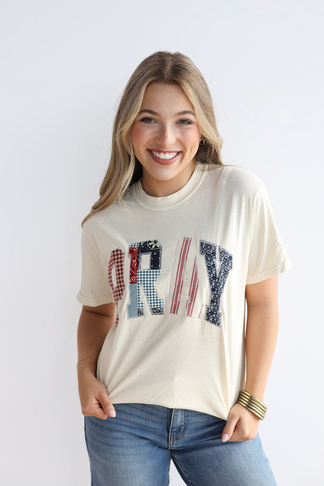 PRAY PLAID TEE - CREAM / SMALL is backordered and will ship as soon as it is back in stock.