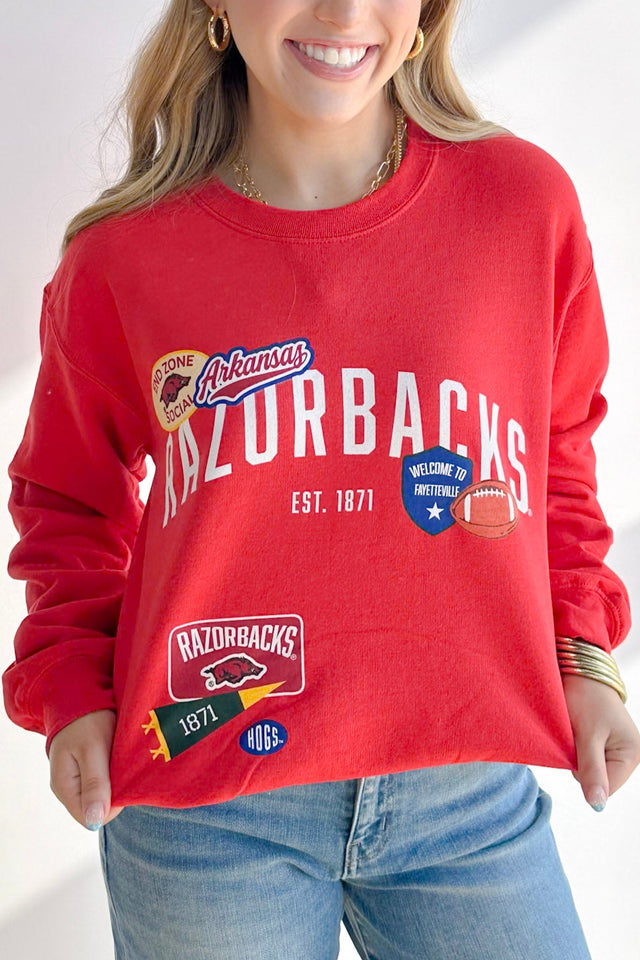 RAZORBACK PATCHES SWEATSHIRT - RED / SMALL is backordered and will ship as soon as it is back in stock.