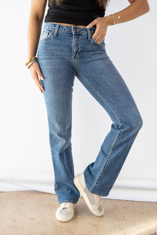 SLIM BOOTCUT LOW RISE JEAN - MEDIUM DENIM / 24 is backordered and will ship as soon as it is back in stock.