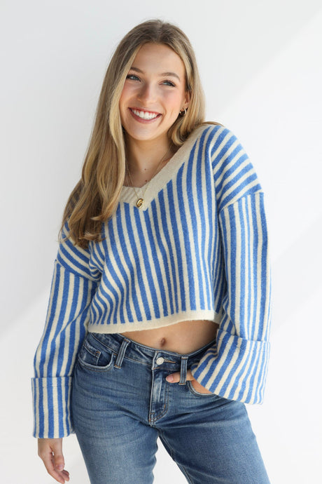 PUMPKIN EMBROIDERED STRIPE SWEATER