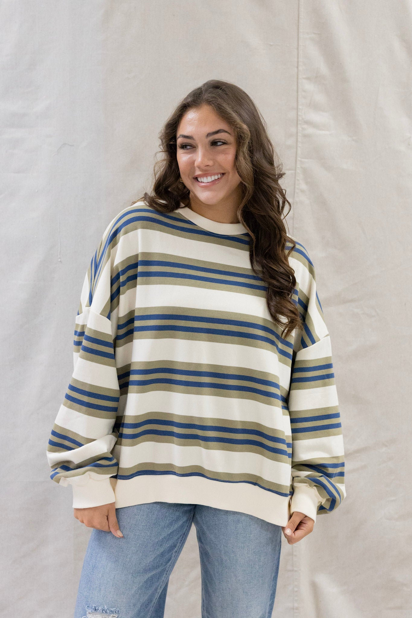 URBAN STRIPED TERRY TOP - OLIVE NAVY / SMALL is backordered and will ship as soon as it is back in stock.