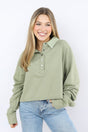 WASHED TERRY COLLARED TOP - OLIVE / SMALL is backordered and will ship as soon as it is back in stock.