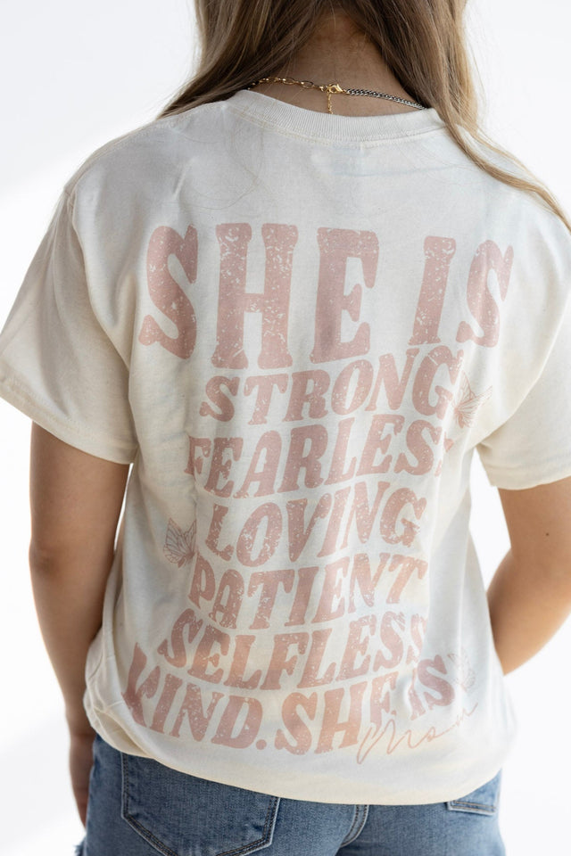 She is Mom Tee - WHITE / MEDIUM is backordered and will ship as soon as it is back in stock.